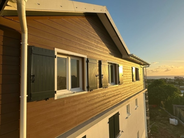 Le caractère soigné de la résidence est renforcé par sa façade en façon pierre, ses enduits minéraux et ses volets battants en bois.
